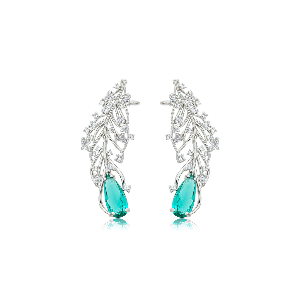 Um verdadeiro espetáculo de elegância e sofisticação! O Brinco Ear Cuff Luxo traz um design orgânico e envolvente que abraça a orelha com detalhes minuciosamente cravejados em zircônias, formando ramos delicados e brilhantes. O destaque especial fica por conta da gota verde esmeralda pendente, que adiciona um toque de cor e requinte à peça.