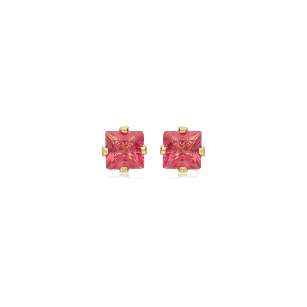 Brinco Ponto de Luz Quadrado Vermelho Rubi PP 1-104