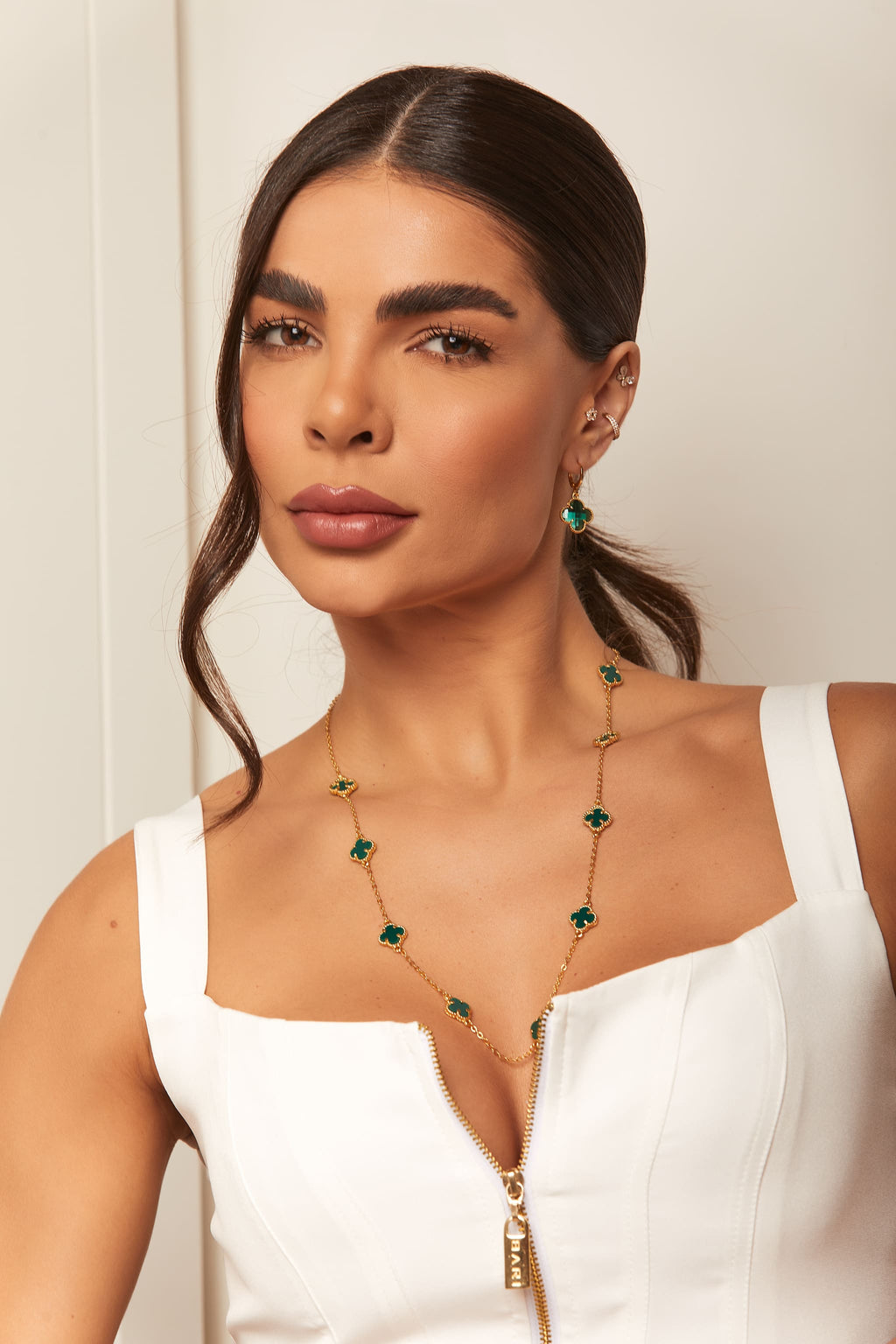 Dica de Estilo: Experimente usar um colar gravata com decotes em V para alongar a silhueta ou combine colares longos com chokers para um visual moderno e equilibrado.